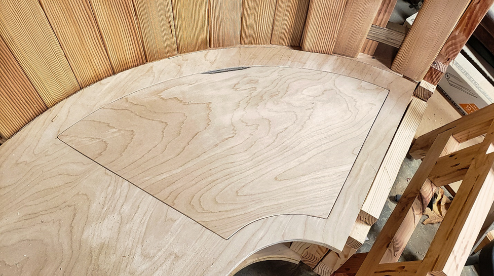 I also built a removable hatch around the curve for more storage.
