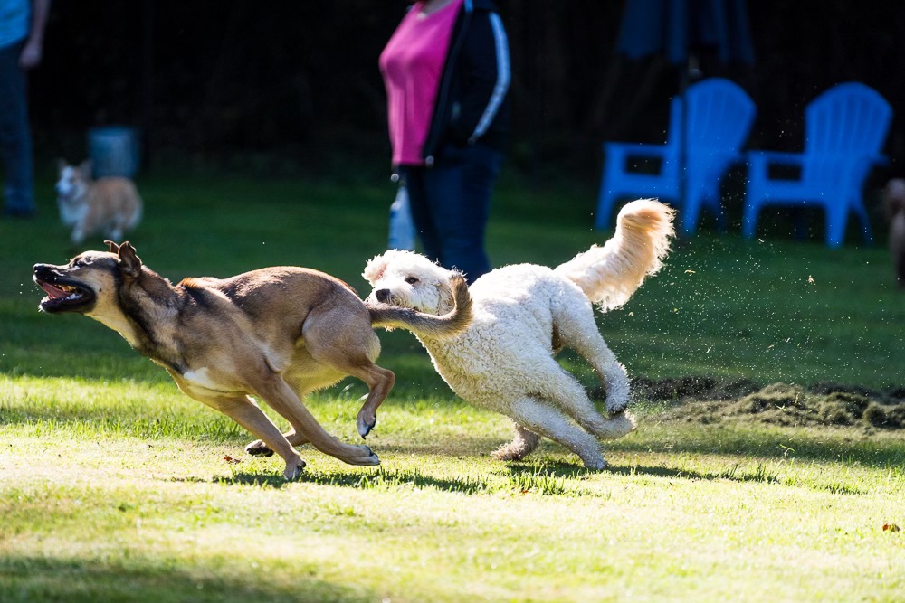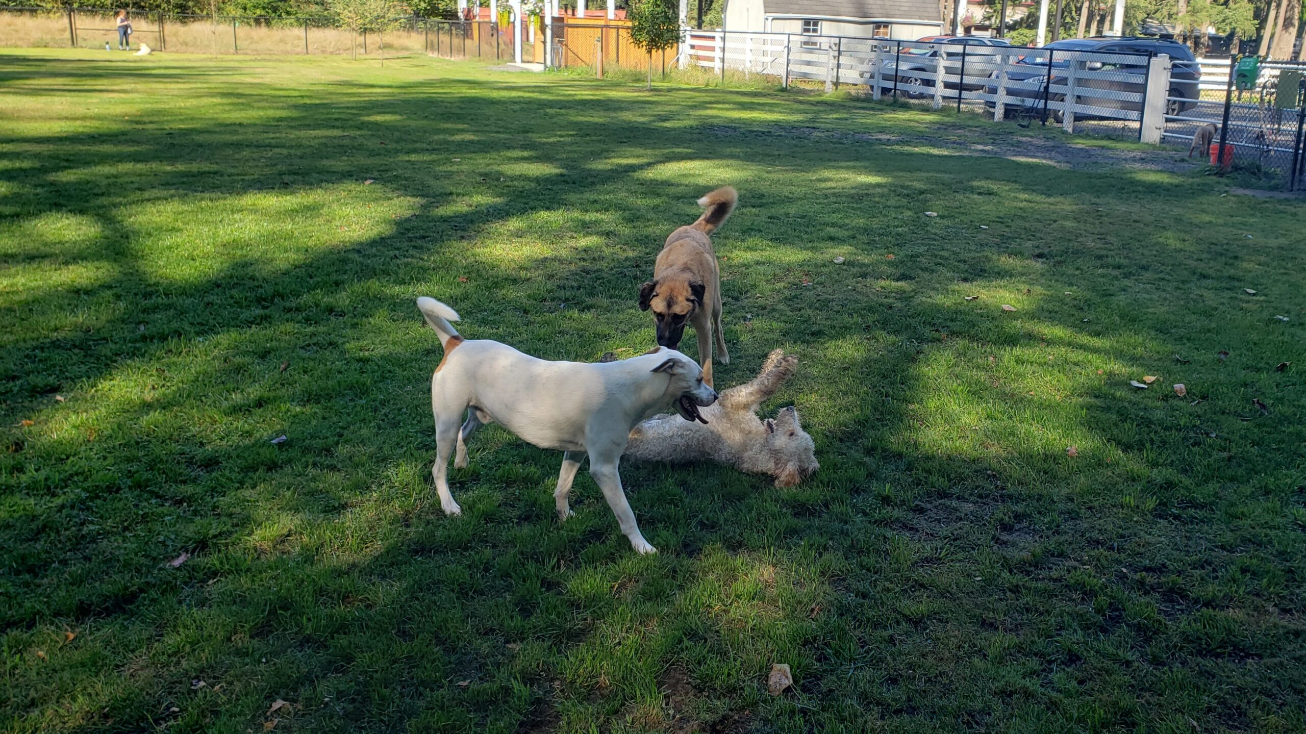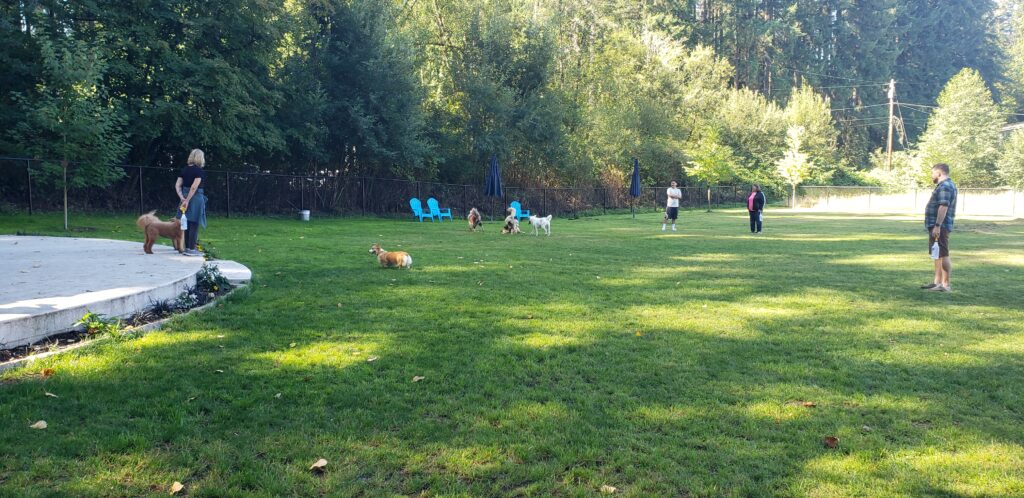 Sherlock is still recovering from his procedure, but has healed enough to play with other dogs. Puppy Manners (near Maltby) has a private dog park (called Sol’s park) that we are members of. It’s nice because all of the dogs (and their owners) have been vetted. All of the owners stand around with vinegar filled spray bottles and spray dogs if they start behaving inappropriately.