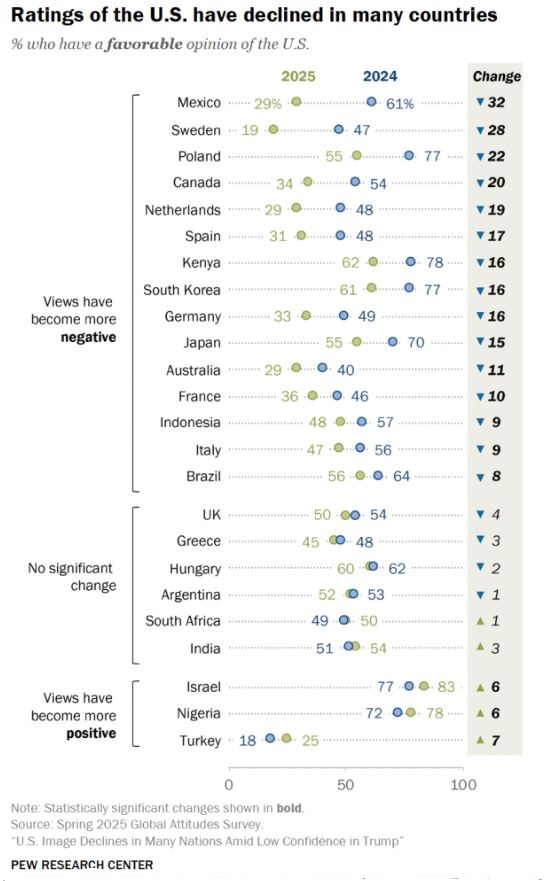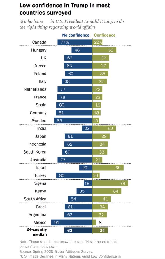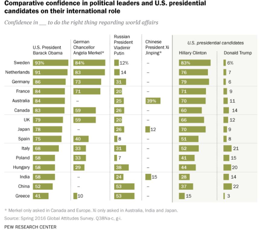Confidence in U.S. leadership has plunged. This Atlantic article offers an interesting perspective.